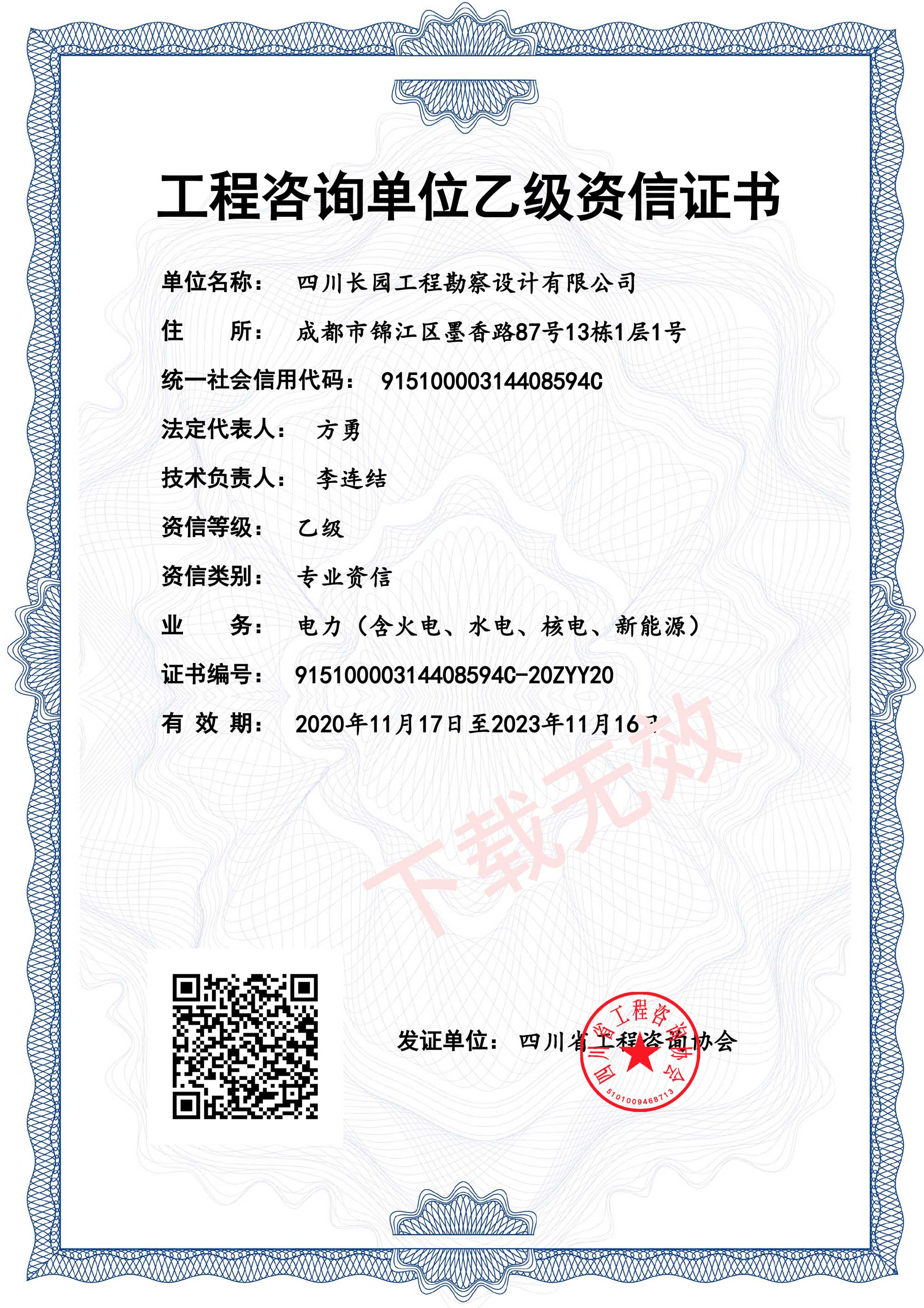 工程咨询单位乙级资信证书