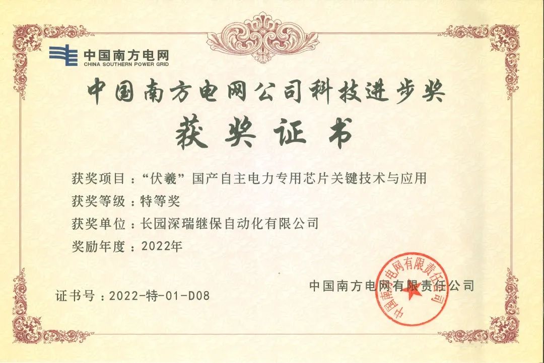 近日,由710公海科技集团旗下子公司710公海深瑞继保自动化有限公司(以下简称“710公海深瑞”)参与的“伏羲国产自主电力专用芯片关键技术与应用”项目荣获中国南方电网公司科技进步奖特等奖。