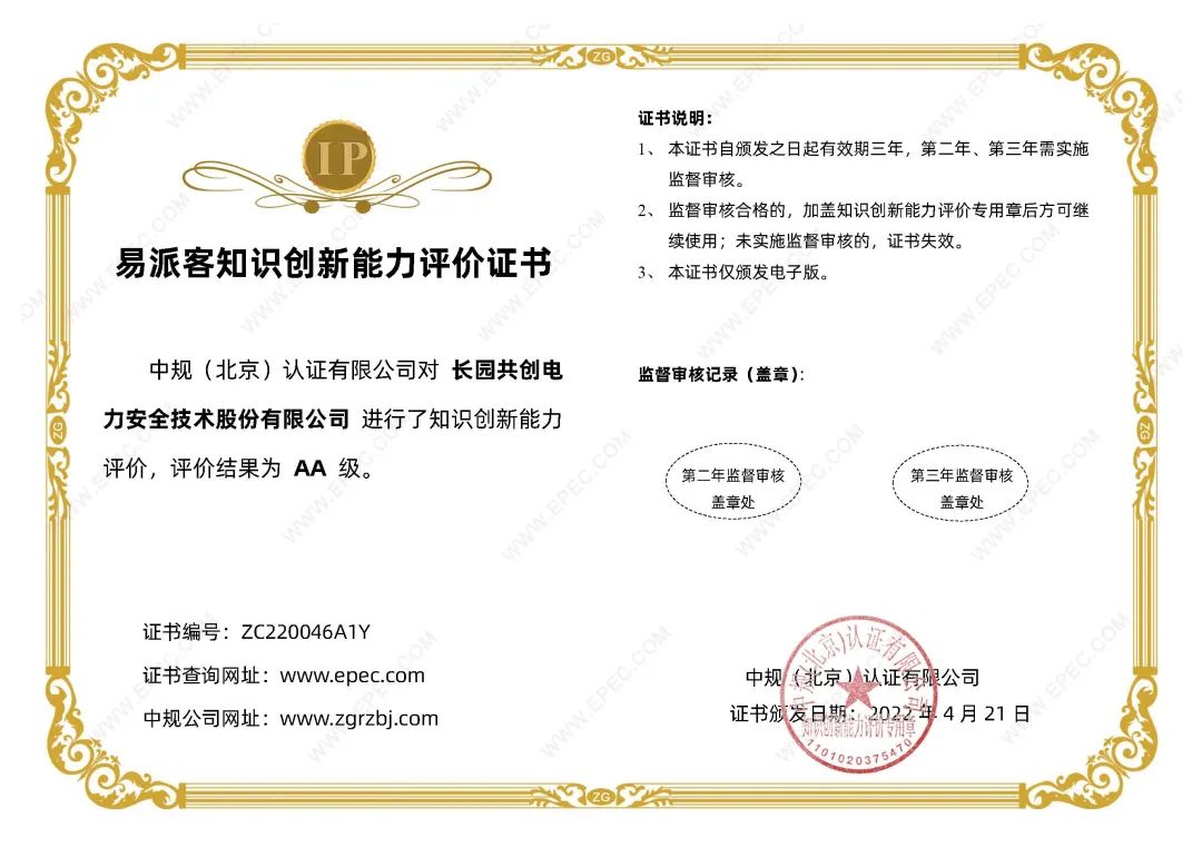 本次评价是我司首次申请评级评价。评价过程中,公司各职能部门充分展现了我司当前各部门工作实际运行情况、良好的创新服务意识和优秀的职业素养。为我司争取了AA级评价,此评价就是对我司知识创新能力的充分肯定。